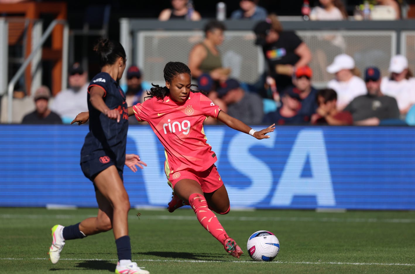 After Bay FC chooses to bring on some fresh legs in the 71st minute, part of that triple sub, Racheal Kundananji proves to be trouble for the Thorns.