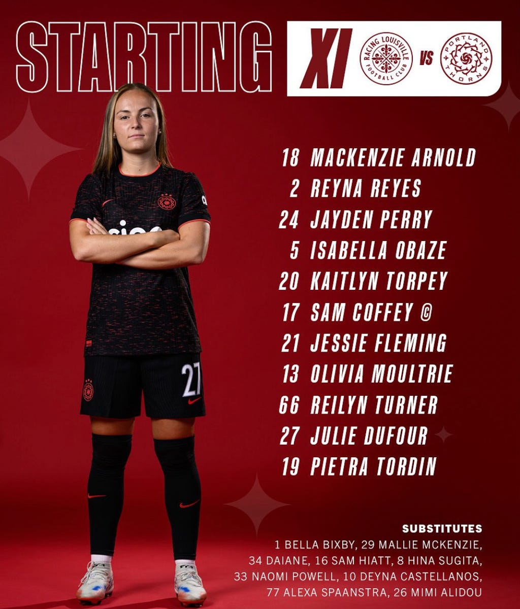 Said changes — Pietra Tordin was back with Reilyn Turner on the offensive for the Thorns. Similarly, Jessie Fleming was back in the midfield, with Hina Sugita starting on the bench.